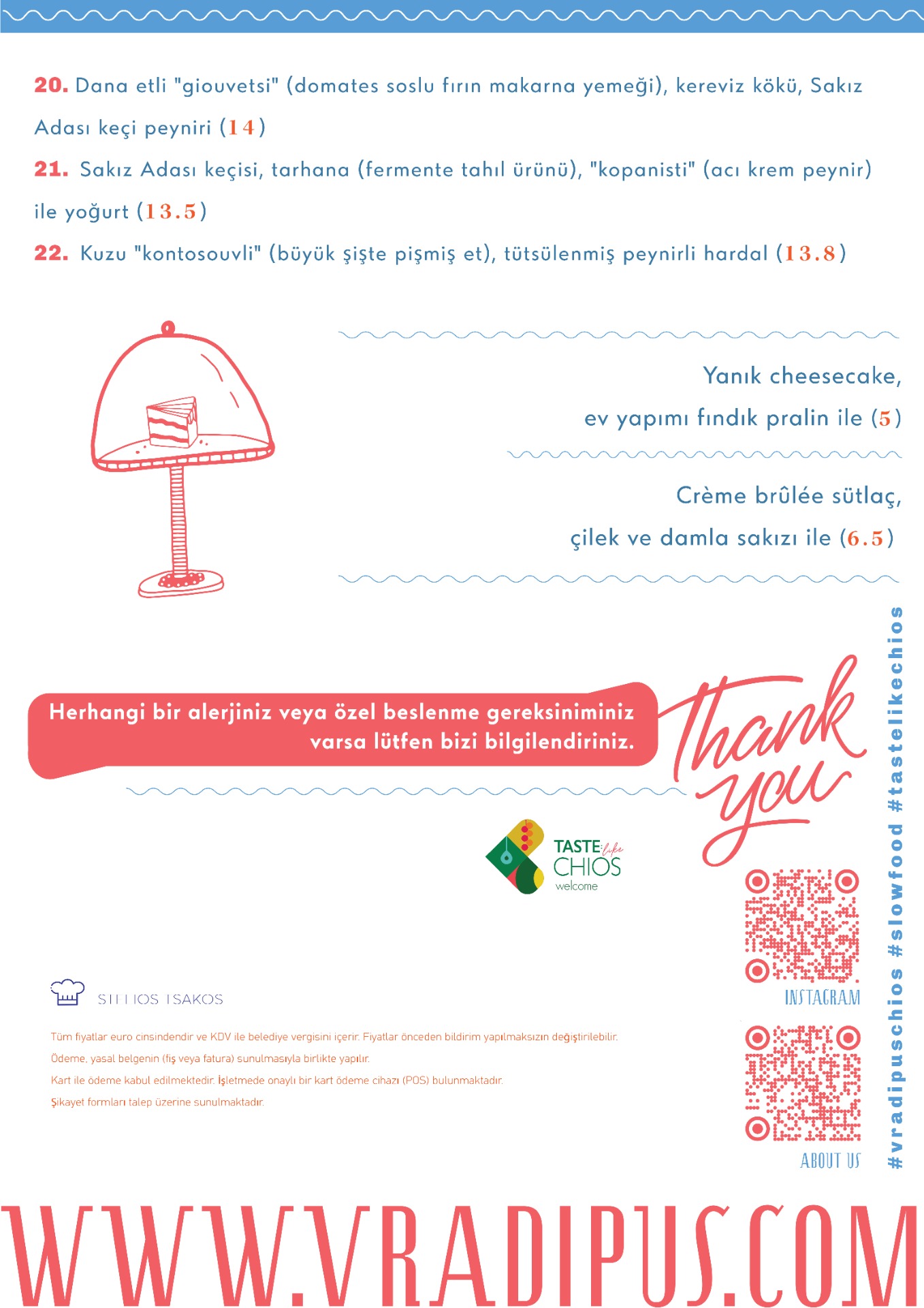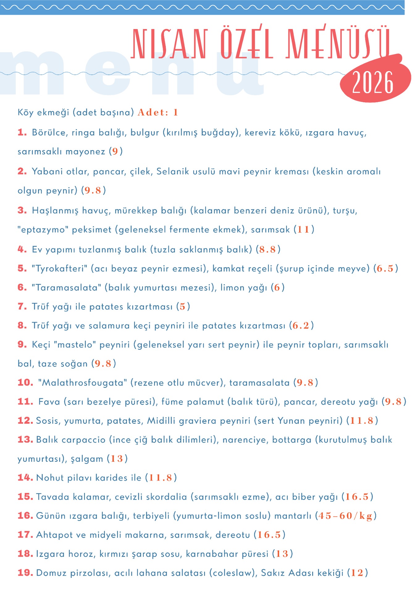 Ekibimizin Türkçe konuşmadığını sizlere nazikçe bildirmek isteriz. Menü çevirisinde oluşabilecek olası yanlış anlama veya hatalardan dolayı içtenlikle özür dileriz. Daha net bir iletişim ve herhangi bir karışıklığı önlemek adına, menümüzün asıl ve en doğru versiyonu olan İngilizce menüyü de incelemenizi rica ederiz. Anlayışınız için çok teşekkür ederiz. Ziyaretinizden dolayı büyük memnuniyet duyuyoruz.